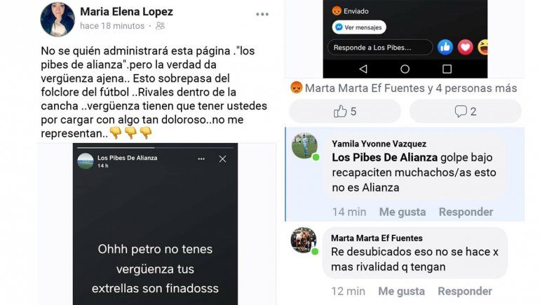 "Entendemos que es gente que no piensa y no responde a Alianza, eso no es Alianza. A nosotros también nos pasó hace poco cuando falleció un pibe de inferiores en un incendio y algún trastornado en las redes se burló. Pero no nos enojamos con Petrolero, porque esos no son hinchas y muchos menos podemos responsabilizar a dos instituciones tan grandes y populares en esta zona y la provincia por actos tan repudiable que se cometen desde el anonimato por quienes dicen simpatizar con uno u otro. Igual reiteramos nuestras disculpas", reflexionó el mandamás de Alianza.