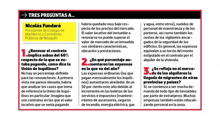 El presidente del Colegio de Martilleros y Corredores Públicos de la ciudad, Nicolás Fundaró, aseguró que no hay un porcentaje definido para las renovaciones y consideró que la cifra que arrojó Gaita es elevada (ver aparte).