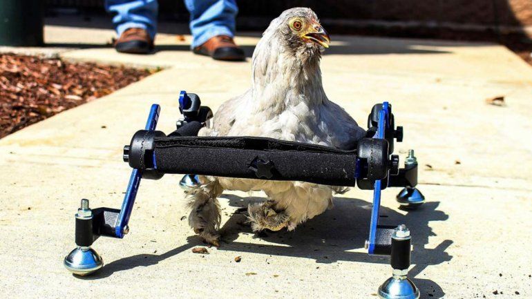 Una niña estadounidense tiene una mascota muy particular: una gallina que es discapacitada y para movilizarse lo hace en una sillas de ruedas. El animal nació con una pata deforme por lo que es imposible que se movilice por sí sola.