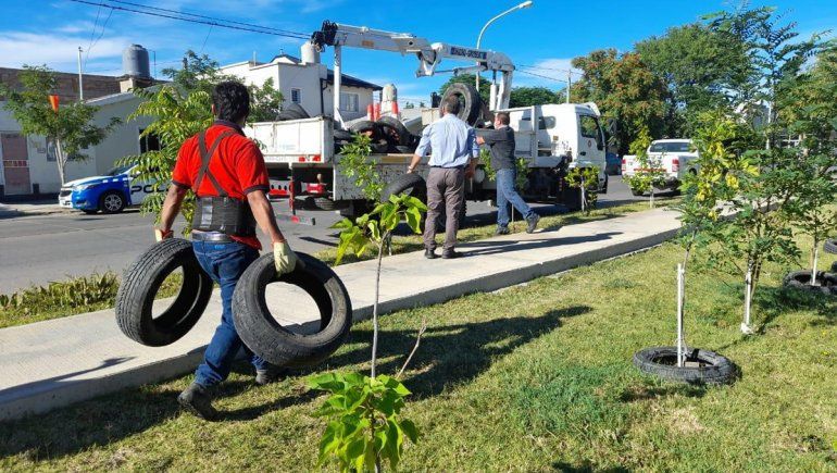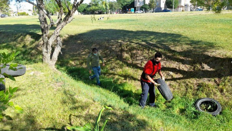 La Municipalidad retiró unos 150 neumáticos que fueron arrojados en un canal de la calle Primeros Pobladores, en una zona que fue reacondicionada y convertida en una plaza para el vecindario.
