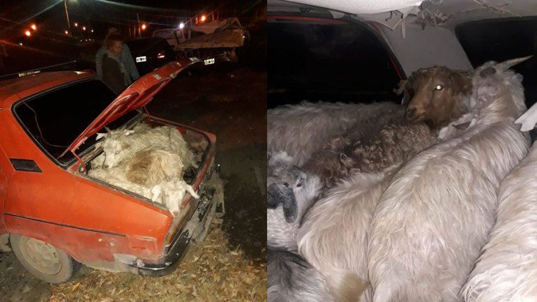 El hecho ocurrió el jueves por la noche durante un control de rutina sobre la Ruta Nacional 151, en Barda del Medio. La Policía detuvo la marcha de un Renault 12 color rojo, y a simple viste se podía ver por las ventanillas varios animales de cabellera blanca en su interior.