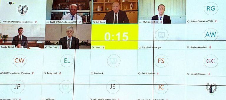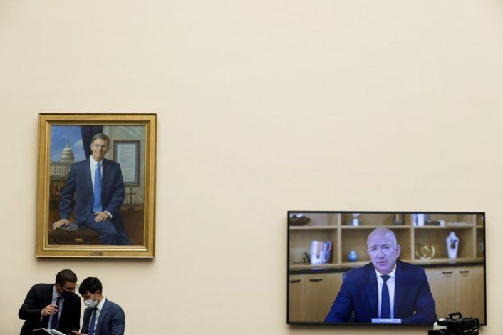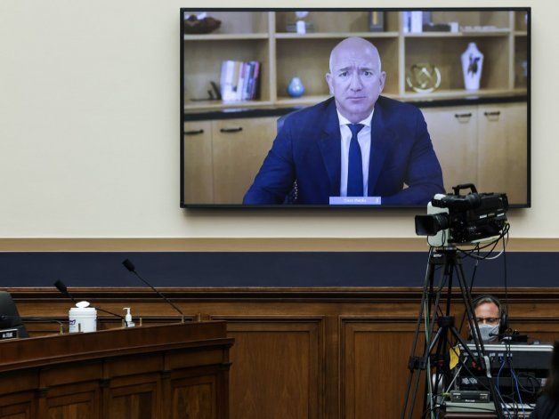 El propietario de Amazon, Jeff Bezos, junto a los CEOs de Apple, Facebook y Google se presentaron de forma virtual en el Congreso de Estados Unidos ante una comisión del Congreso en una audiencia antimonopolio que examina el poder del mercado y los posibles abusos de competencia de estas empresas.