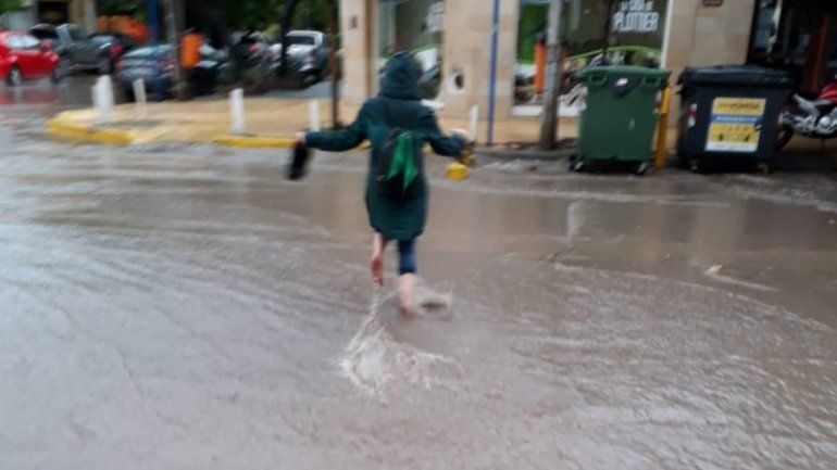 En otros sectores se hizo complicado cruzar la calle y varios peatones debieron descalzarse para encarar el desafío.