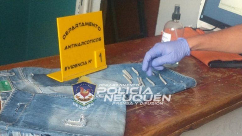 Nuevamente respondiendo al operativo de rigor, los efectivos de la unidad realizaron un palpado de la prenda y detectaron que se veía "más voluminosa de lo habitual", por lo que cortaron el zurcido y allí encontraron nueve cigarrillos. El personal de Antinarcóticos confirmó que se trataba de marihuana, 6,9 gramos en total.
