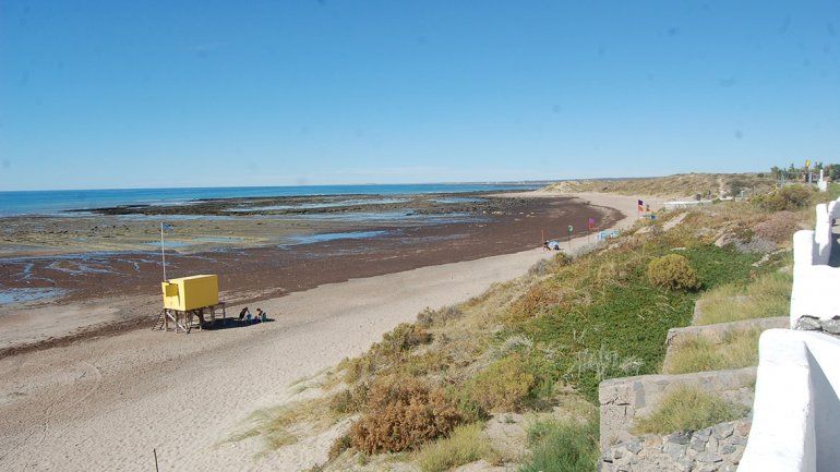 Las últimas marejadas y mareas extraordinarias cubrieron con algas un amplio sector de playa en Las Grutas, entre la Sexta y Séptima Bajada. Es un fenómeno natural que se repite habitualmente, pero que en verano genera enojos, pues las plantas acuáticas ocupan buena parte de la arena cuando la marea está baja.