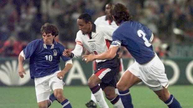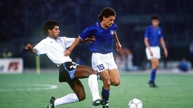 Tercer puesto del Mundial 1990. Italia venía de quedar afuera de su propia Copa del Mundo frente a la Argentina, en aquel recordado partido de los penales de Sergio Goycochea. Inglaterra por su parte también había sido eliminada por penales ante Alemania Federal. En el encuentro por la medalla de bronce, los locales se impusieron 2-1 con goles de Roberto Baggio y Salvatore Schillaci. David Platt había igualado parcialmente el marcador.