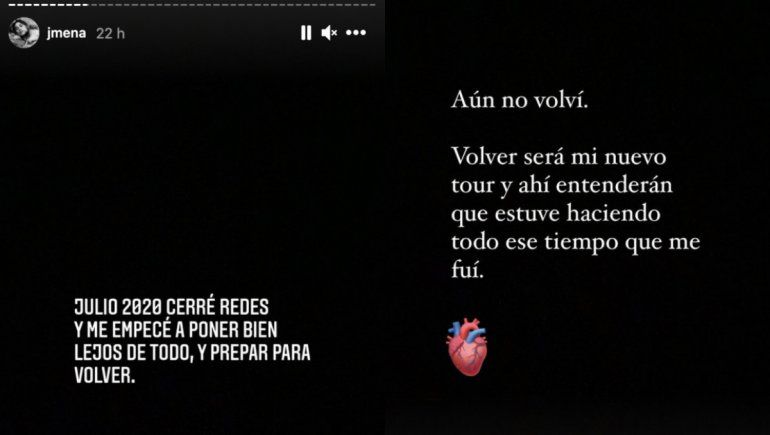 En una historia posterior, Barón dio más detalles del proceso que vivió mientras estuvo alejada de la opinión pública. "En julio de 2020 cerré las redes y empecé a ponerme bien lejos de todo. A prepararme para volver... Aún no volví", detalló la artista.