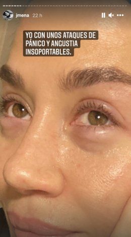 En las historias de Instagram Jimena Barón publicó una fotografía de su rostro en la que se la ve con los ojos con expresión triste y con apariencia de haber llorado. Para acompañar la postal la cantante y jurado de La academia escribió unas breves líneas en las que reveló las afecciones psicológicas que padeció el año pasado.