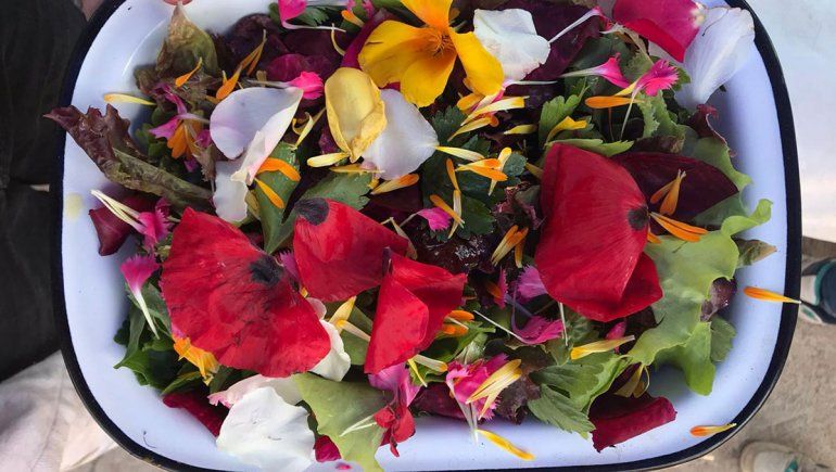 Mientras el fuego sucede, la tierra se renueva y se riega. Se cosechan lechugas, arvejas, tomillo, verdeo, puerro, ajo, rúcula, ciboulette, albahaca, y fabulosas flores que aportaran sus pétalos a una muy bella ensalada.