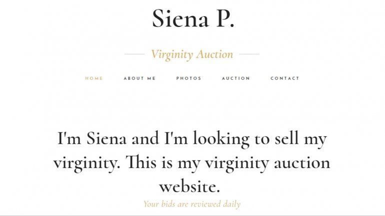 "Soy Siena y estoy buscando vender mi virginidad. Este es mi sitio web de subastas de virginidad", se puede leer en el encabezado de la web.