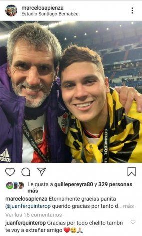Ayer previo al inicio del entrenamiento matutino, le respondió al masajista del plantel, Marcelo Sapienza, quien le había dedicado un mensaje de despedida: "Gracias por todo, Chelito, también te voy a extrañar amigo", escribió Quintero junto tres emojis, uno de ellos el de la tristeza con una lágrima.