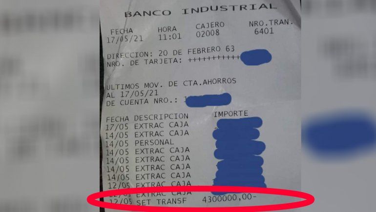 Ese medio explicó que se trató de una transferencia realizada por una empresa, que por una confusión contable, depositó esa abultada cifra. Fue un sábado y domingo de terror para la compañía y de incertidumbre para la familia de Paco.