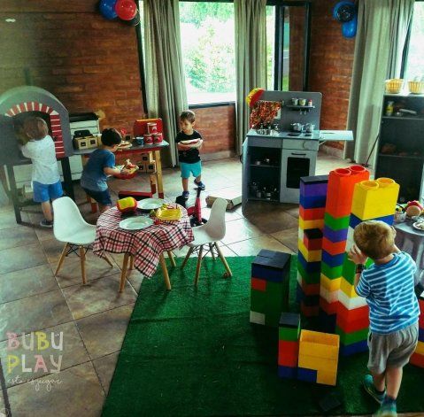 También hay muchos juegos de construcción, de apilar y luego para los niños y niñas de más de 4 años aparecen los juegos representativos o de roles. Preparan rincones de cocina, verdulería, pizzería, pastelería, carpintería, parrilla, disfraces, florería y arte. Para ofrecer estos espacios se asociaron con Bubu Play.