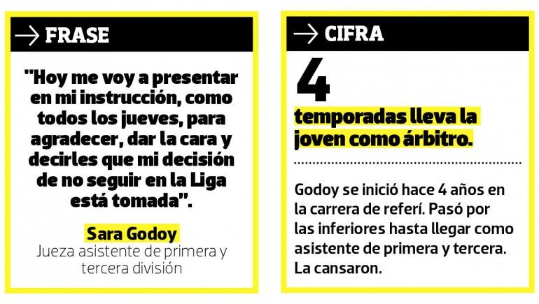 Sara Godoy, una joven asistente de 22 años, trabajaba como número dos del juez principal Román Domínguez. De espaldas a la popular que está frente a la zona de vestuarios de la denominada “Mejor del Valle”, se cansó de recibir todo tipo de insultos y discriminaciones.