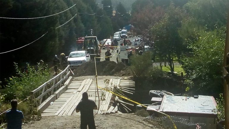 El siniestro, que el martes destruyó el puente viejo de Junín de los Andes, sumó otro aditamento : dobló un caño de gas, por lo que personal de Camuzzi debió cortarlo.
