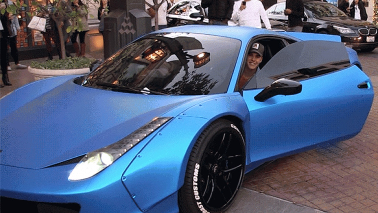 Uno de los motivos que llevó a la empresa a tomar la decisión, fue que el cantante adquirió un modelo 458 Italia de color blanco y lo llevó a una empresa llamada West Coast Customs para que personalicen vehículo a su gusto. El joven decidió colocarle un kit Liberty Walk, que ensanchó la carrocería con unos guardabarros que parecen “parches” abulonados, además de agregar faldones laterales, splitter delantero, difusor en los bajos de la parte trasera, sobre la cual se colocó un gran alerón. Además, le cambió el color blanco a un azul brillante, que no se encuentra dentro de la gama que ofrece la marca, entre otras cuestiones.