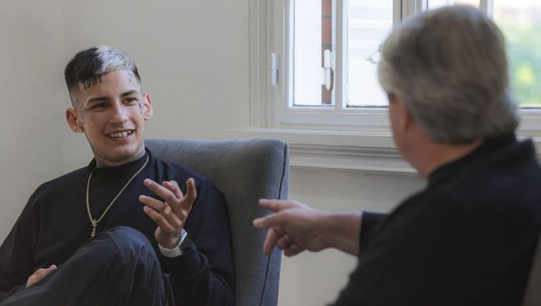 “Tenemos la oportunidad de hacer las cosas de otro modo y bien”, le dijo el Presidente al cantante, en uno de los extractos de la conversación. L-Gante agradeció la invitación y remarcó que buscaba a través del encuentro que los jóvenes “no tengan miedo a la hora de hablar con alguien mayor”. “Yo estuve viendo algo suyo en la tele hace unos días, yo tenía esa idea. En unas entrevistas había dicho de cambiar planes sociales por planes de trabajo”, le dijo al mandatario. “Yo me pongo a pensar en el futuro también. Me gustaría que, en vez de agarrar una regalía, se agarre un trabajo concreto”, agregó.