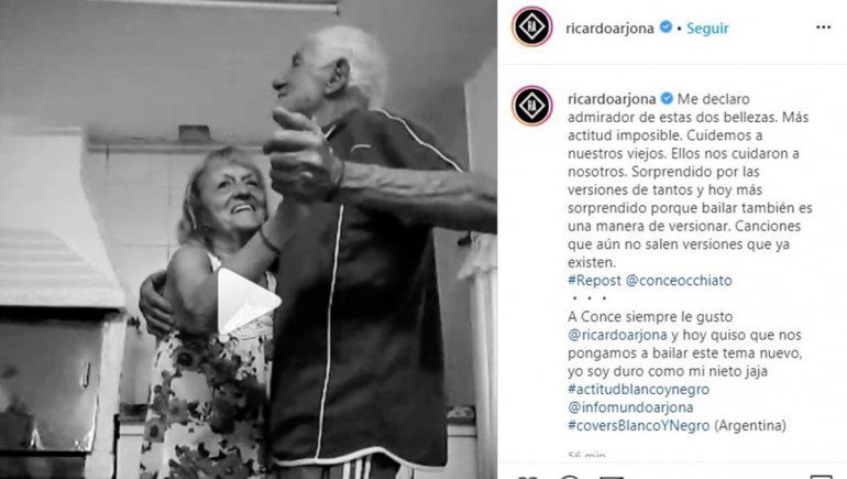 Al ver el video, el guatemalteco replicó las imágenes en su cuenta e hizo viral el tierno video. "A Conce siempre le gusto @ricardoarjona y hoy quiso que nos pongamos a bailar este tema nuevo, yo soy duro como mi nieto jaja #actitudblancoynegro @infomundoarjona #coversBlanco y Negro (Argentina)", fue el comentario con el que presentaron su baile los abuelos.