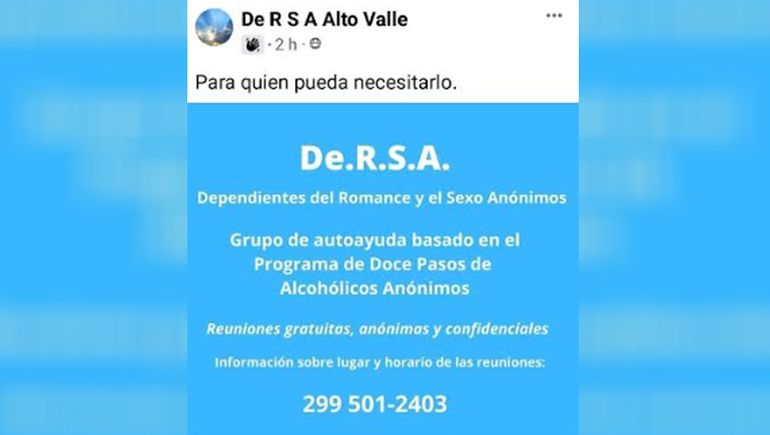 Esa información fue esencial para que un grupo de personas se diera cuenta de que la región podía ser un lugar que podía requerir de este tipo de espacios (cabe aclarar que los fetiches no siempre están relacionados con una adicción sexual). Fue así que, se formó el grupo Dependientes del Romance y el Sexo Anónimos, siguiendo los lineamientos de Sexo Adictos Anónimos Argentina (SAA).