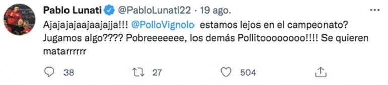 En su comentario editorial el lunes, Vignolo admitió que los hinchas se “apasionan” y dicen “cosas". “Yo lo puedo entender, porque yo también me he calentado escuchando radios, porque yo también me he embroncado con relatores, porque yo también he cambiado, porque yo también me he sentado en el mismo lugar, porque yo también he buscado la misma ropa, la misma remera, y he buscado hasta al mismo comentarista y al mismo relator. No soy un bolud... que no miraba fútbol ni escuchaba fútbol”, explicó.