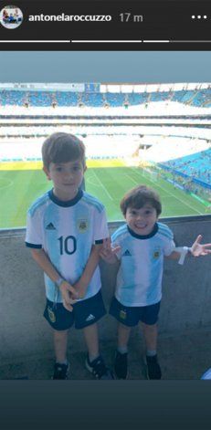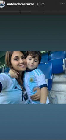 La mujer del astro argentino, tras el encuentro subió a su cuenta de Istagram un video y dos historias a su cuenta de Instagram en la que se puede ver a sus criaturas a pleno celeste y blanco.
