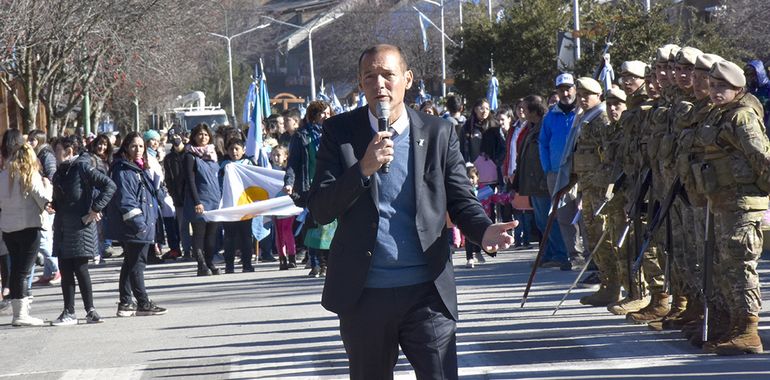 El acto se desarrolló en el Centro de Convenciones de la localidad y la comitiva después se trasladó a la avenida Arrayanes, donde tuvo lugar la entrega de ofrendas y el desfile. El mandatario estuvo acompañado por el intendente Fabio Stefani. Por la tarde será inaugurada la senda del Área Natural Protegida Selva Triste, que insumió una inversión conjunta entre Nación y Provincia de 13.500.000 pesos.