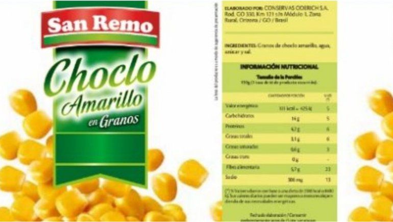 Por último, a través de la disposición 1337/2020, la administración también prohibió "Choclo amarillo en granos, marca San Remo, lote NSOCOI, vto 23/10/22, RNPA Nº 027-00-005874, RNE Nº00000467", después de que la Dirección General de Control de la Industria Alimenticia de la provincia de Córdoba interviniera preventivamente 92.688 unidades de latas del producto investigado.