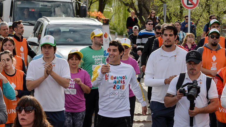 Diez jóvenes deportistas y representantes culturales de esta ciudad portaron este jueves por la tarde en el Paseo Costero la antorcha de los Juegos Olímpicos de la Juventud que se desarrollará entre el 6 y el 18 de octubre en Buenos Aires.