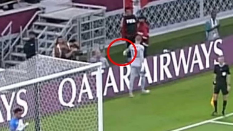 Las cámaras a ras de la cancha de Movistar Deportes lograron captar el momento en el que el arquero australiano, efectivamente, tira las notas del Pulpo Gallese que estaban pegadas en su botella de agua. El "machete" del peruano contenía información sobre los pateadores rivales.