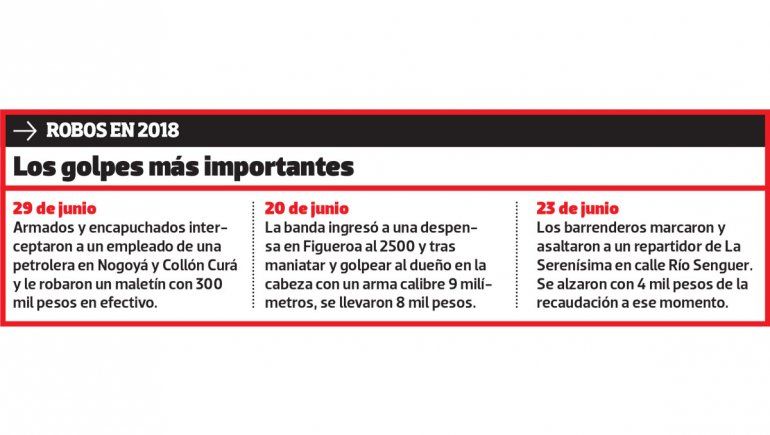 Finalmente, en el tercer hecho, armados y encapuchados interceptaron a un empleado de una empresa petrolera en Nogoyá y Collón Curá y le robaron un maletín con 300 mil pesos. Por otra parte, Naupapi fue absuelto en un cuarto hecho y Brianthe fue hallado culpable en otros cinco.