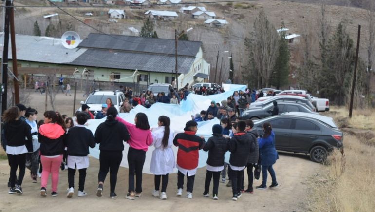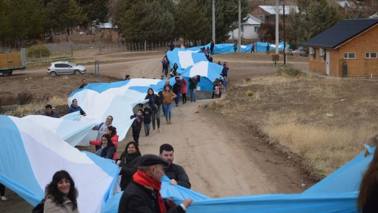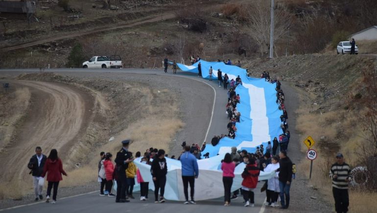 La bandera de la República Argentina más larga de la provincia de Neuquén copó las calles de Andacollo este martes al mediodía, tras los actos del 20 de junio. El proyecto nació en una escuela de la localidad y el símbolo patrio mide más de 300 metros de largo.