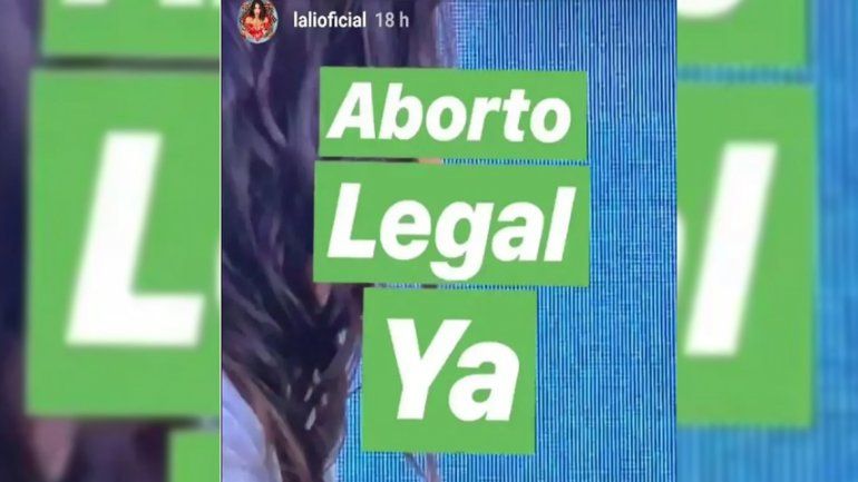 En ese momento, la cantante puso una foto de la pantalla televisiva y escribió: "Aborto legal ya ¡Basta!".