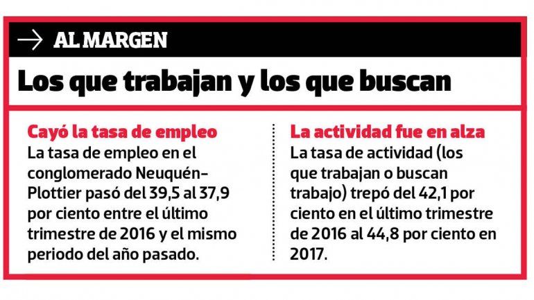 Neuquén.- Los ocho mil desocupados que habitan el conglomerado Neuquén-Plottier no están solos en la competencia por los puestos laborales ofrecidos en la región. Si bien la tasa de desempleo cayó en el último trimestre del año pasado, según la medición del Indec, hay otras 23 mil personas que pelean por un trabajo nuevo, de acuerdo con el mismo trabajo estadístico.