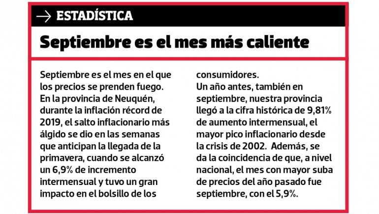 El 2019 terminó con una inflación récord para Neuquén, del 61,13% interanual, solo equiparable al terremoto que causó la crisis de diciembre de 2001. Nuestra provincia no tenía una escalada de precios tan intensa desde 2002, cuando la incertidumbre económica a nivel nacional produjo un aumento anualizado en las góndolas del 69,4%.
