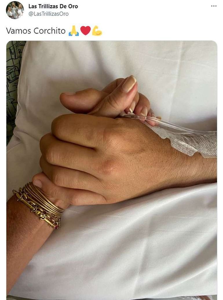 Días más tarde la mamá del polista compartió una conmovedora imagen que tomó desde la habitación del centro médico en el que se encuentra internado su hijo. “Vamos, Corchito”, escribió haciendo referencia al apodo del polista junto a la imagen en la que la conductora le está sosteniendo la mano a su hijo.