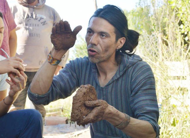 Tiene 37 años, es neuquino y vive en Plottier, ciudad donde pasó todo el año de pandemia por el coronavirus y a la que llegó luego de viajar por Brasil, Colombia, México y Venezuela, brindando talleres con herramientas para la construcción con materiales naturales como el barro, paja y arcilla.