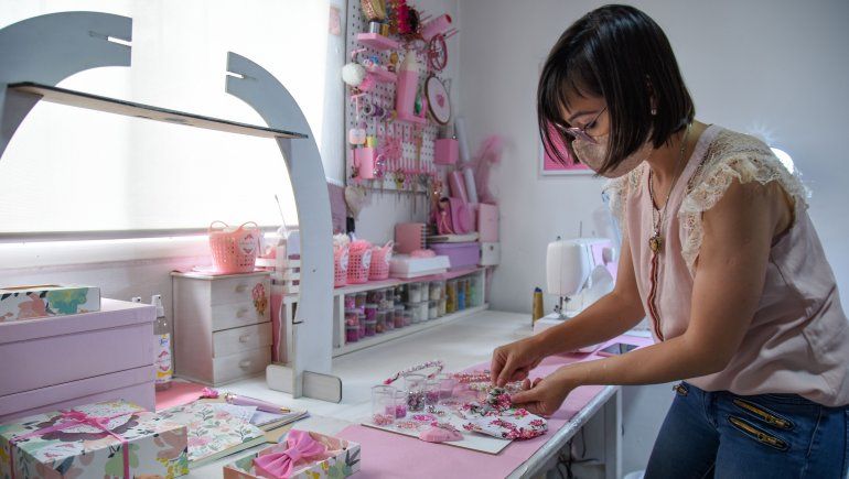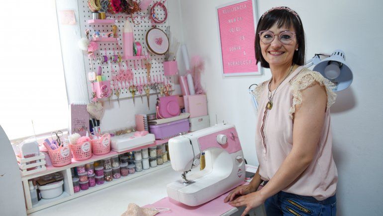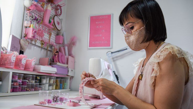 También lanzó una línea de alfileteros imantados en colores rosas y otra de diademas -vinchas- bordadas. Los barbijos confeccionados por esta diseñadora local también se fueron hasta Córdoba, Buenos Aires y Rosario y aún tiene más ciudades por alcanzar.