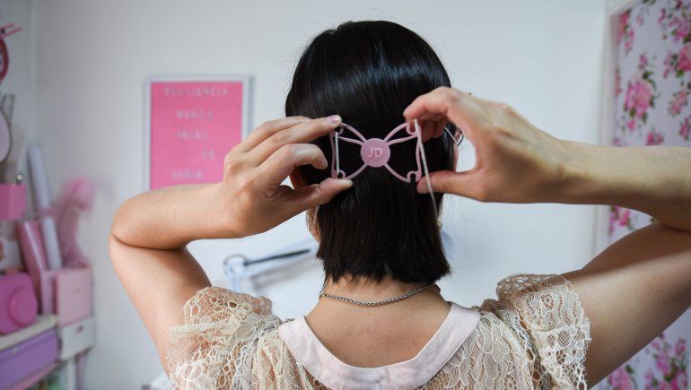 A su lista de producciones sumó prendedores, con diseños solicitados por sus clientes, y pines como complemento de los tapabocas. “Pude ir renovando las ideas y a partir del tapaboca lancé una línea de ‘salva orejas’, un accesorio hecho en impresora 3D, flexibles, que se coloca en las tiras de los tapabocas y protege las orejas”, describió la diseñadora.