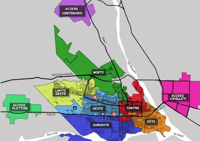 La encuesta comienza con una gran mapa, en el que se divide a la ciudad en seis sectores y se agregan también como zonas de análisis los accesos a Plottier, Centenario y Cipolletti. El secretario de la Unco señaló a LMN que se organizó de esa manera porque "nos interesa ver de qué punto a qué punto se trasladan las personas y el motivo del viaje, si es por trabajo o estudios, porque eso nos permite pensar en la infraestructura en territorio"