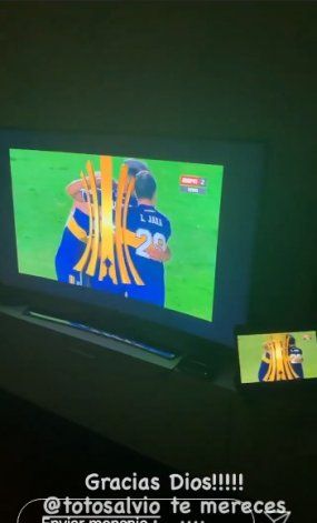 Es más, tanta fue su euforia que pidió Selección para su chico. "¡¡¡Es para Toto, la Selección!!! @totosalvio8, perdón la euforia... Es la distancia", escribió en twitter la esposa del goleador de la velada, autor de un doblete.