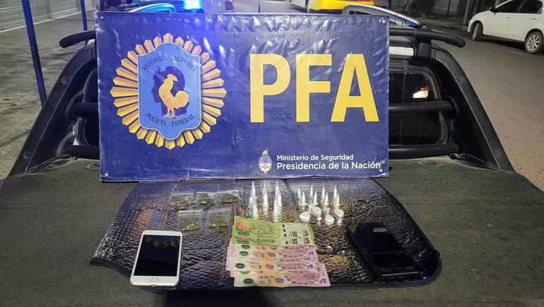 "En un trabajo coordinado con la justicia, los agentes antidrogas de la Policía Federal articularon un procedimiento para lograr su detención in fraganti en horas de la noche de este viernes. Así es que fue sorprendido y detenido por policías de civil, llevando consigo cantidades importantes de dosis de cocaína fraccionada listas para su comercialización además de envoltorios de flores o cogollos también fraccionados y preparados para su venta", expresaron.