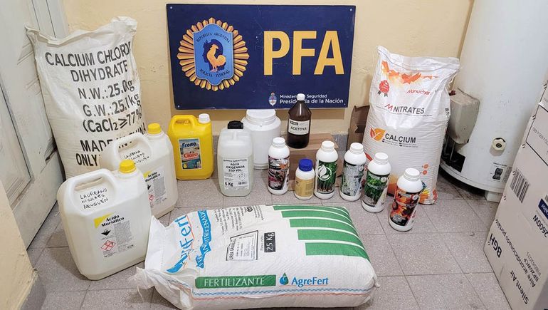 Durante los allanamientos realizados en los departamentos que el investigado ocupaba sobre la calle Alcorta al 700, se encontraron invernaderos ilegales de plantas de marihuana, gran cantidad de cogollos, picadura de marihuana, plantas en estado de floración, medio kilo de clorhidrato de cocaína, gran cantidad de fertilizantes, precursores químicos, luminarias adecuadas para el cultivo, sensores de temperatura, y demás aparatos necesarios para el funcionamiento de los laboratorios.