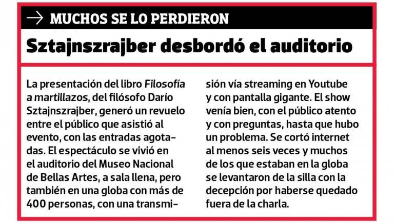 “Fue un éxito porque además todas las exposiciones se hicieron a sala llena”, indicó la funcionaria municipal. En efecto, no solo los grandes escritores que vinieron de Buenos Aires tuvieron un fuerte acompañamiento del público, sino que también los autores locales lograron la atención entre el público neuquino.