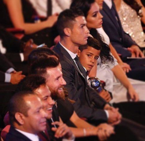 En un momento de la ceremonia, el hijo del portugués se acercó y estrechó la mano del rosarino, quien es uno de sus ídolos.