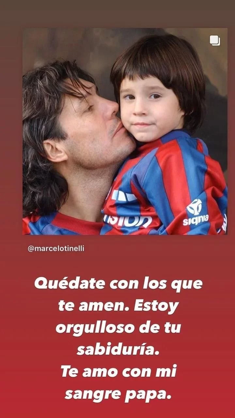 "Legado", "Compromiso", "Eternidad", "Amor" y "Memoria" fueron algunas de las palabras que Francisco Tinelli eligió para acompañar sus imágenes, en donde puede vérselo junto a Marcelo años atrás y también se puede encontrar a Lorenzo (el más pequeño de la familia) alentando al "Ciclón" en el Nuevo Gasómetro.