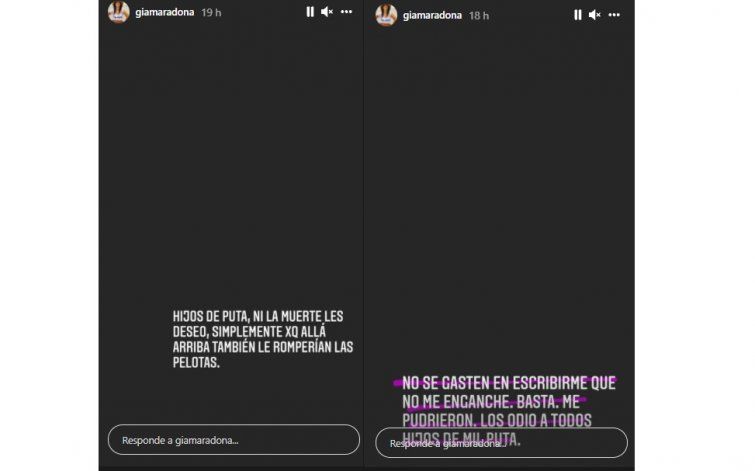 Luego, en su cuenta de Instagram expresó furiosa: "Hijos de puta, ni la muerte les deseo, simplemente porque allá arriba también el romperán las pelotas".