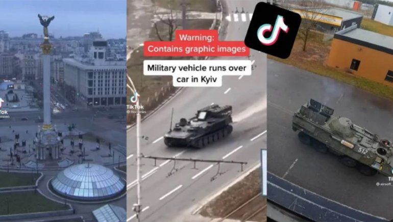 Los vídeos de personas huyendo y llorando en refugios antibombas, las explosiones en las zonas urbanas y los misiles que atravesaban las ciudades ucranianas, colmaron TikTok en lugar de su oferta habitual de vídeos de moda, fitness y baile.