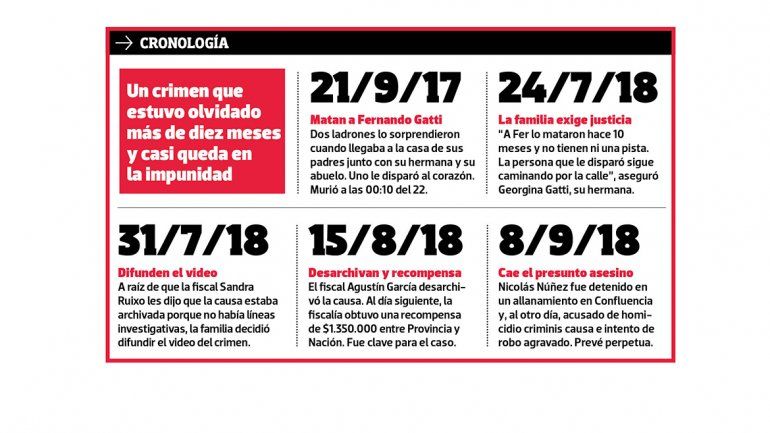 El 21 de septiembre de 2017, la familia Gatti se quebró. Un delincuente armado les arrebató parte de sí mismos al asesinar a Fernando (35) en un violento asalto en la puerta de la casa de sus padres, en el barrio Río Grande. Todos los sueños, proyectos e ilusiones se perdieron. Hoy, a un año, viven por inercia y con la esperanza de que el único acusado por el brutal crimen pague con prisión perpetua por dejarlos sin Fernando.