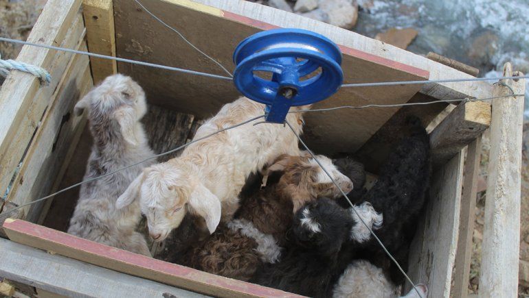 Los crianceros del norte neuquino muchas veces echan mano a su espíritu de creación e invención para agilizar sus tareas y, en este caso,para salvar y a poner a resguardo la crianza de los chivitos, que son la base de su sustento económico. Así es que el sistema aéreo para trasladar de una orilla a la otra a los chivitos fue ideado y realizado por Lisandro Retamal, el criancero de la familia.