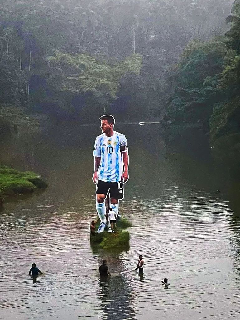 En las imágenes aéreas se ve como, luego de una larga caravana, los aficionados de Messi se meten en un río local y colocan la figura del jugador del PSG sobre una pequeña isla. La vista panorámica del final terminó de enamorar a todos los fieles seguidores del rosarino.